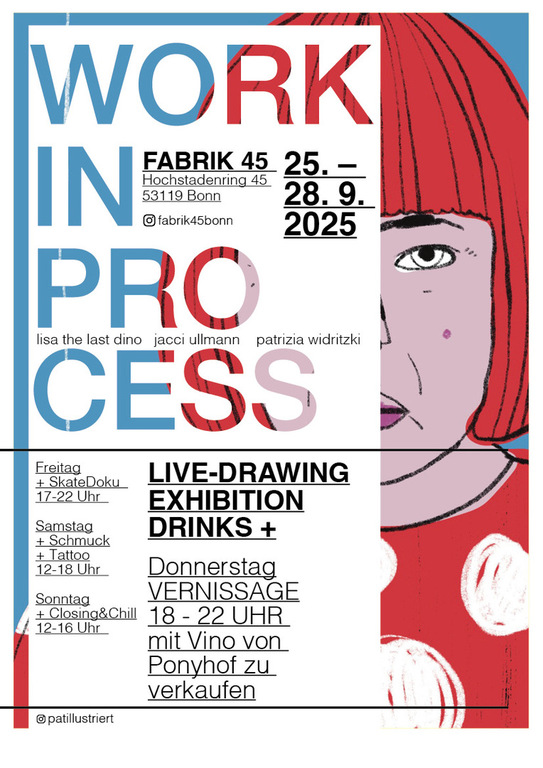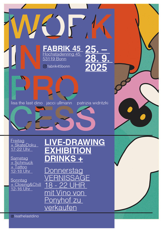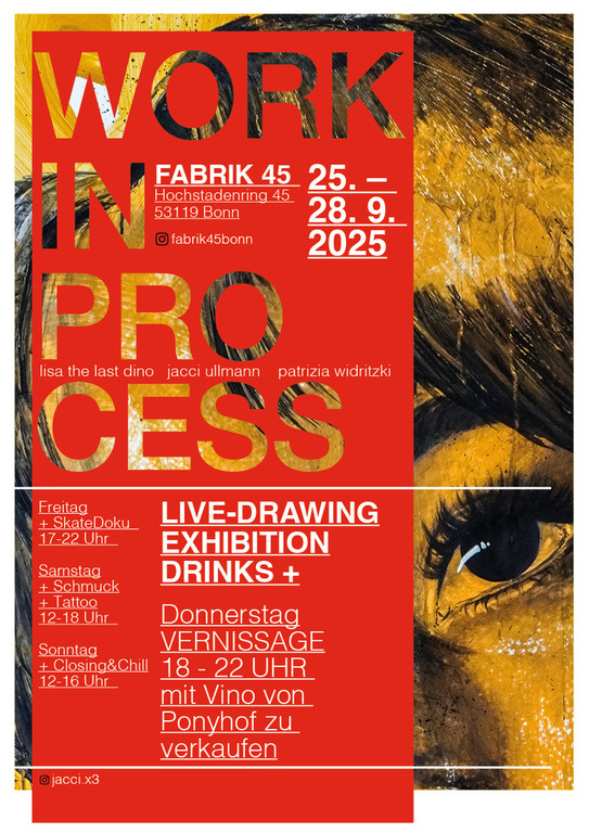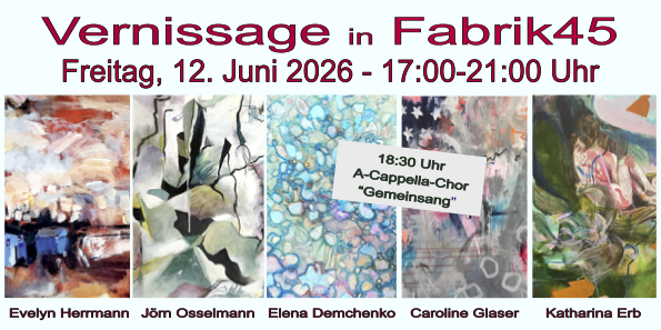Die Fabrik45 ist ein Open Space, das heißt die Künstler müssen ihre Ausstellung von A -Z komplett selbständig organisieren, vom Pressetext , über Flyer / Plakate alles selber designen und drucken